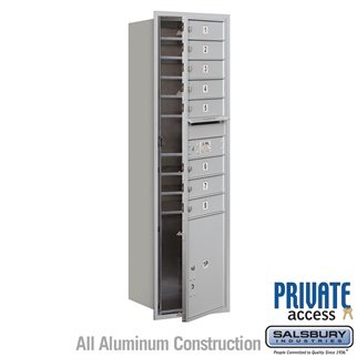 #4C Horizontal Mailbox (Includes Master Commercial Locks) - 15 Door High Unit (55 Inches) - Single Column - 8 MB1 Doors / 1 PL5 - Aluminum - Front Loading - Private Access - Salsbury Industries - 820996410900