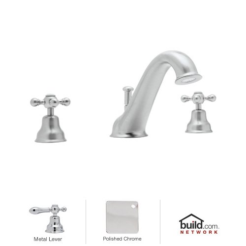 Rohl AC25LM Cisal Roman Tub Faucet with Classic Metal Lever Handles, Polished Chrome?Cisal Roman Tub Faucet with Classic Metal Lever Handles Rohl's Cisal Classic collection of bathroom faucets and fixtures features traditional design elements meant to create a focal point. This family is manufactured in the Italian town of Alzo, which was once renowned for making bronze church bells. Today, Alzo is widely regarded as the "Village of the Faucets," and Rohl's Cisal Classic collection employs bell-shaped bases of the spout handles as a tribute to the town's history. This family features a wide range of bathroom faucets, like single and double handle, as well as single hole, centerset, and widespread configurations. These products feature brass construction and are available in five finish options. Rohl AC25LM Features: All brass faucet body construction - weight: 12.5 lbs. Hand-machined from solid brass stock Industry leading, 1/4 turn lifetime ceramic disc valve Superior finishing process - chemical, scratch, and stain resistant Number of installation holes required: 3 Installs onto decks up to 1-9/16" thick 17 gallons-per-minute flow rate Classic metal lever handles included Spout height: 4-3/8" (measured from counter top to faucet outlet) Spout reach: 7-7/8" (measured from center of faucet base to center of faucet outlet) Designed for use with standard U.S. plumbing connections Extra secure mounting assembly All necessary mounting hardware included Fully covered under Rohl's limited lifetime warranty Manufactured in New Zealand, Western Europe, and/or North AmericaVariations: AC25LM - This model AC25L - Same model with ornate metal lever handles AC25LP - Same model with white resin lever handles AC25X - Same model with metal cross handlesAbout Rohl: Excellence, durability, and beauty. Family values, integrity, and innovation. These are all terms which aptly describe Rohl and its remarkable selection of kitchen and bathroom faucets and fixtures