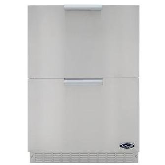 DCS RF24D 24 Built-in Double Drawer Refrigerator with 5.6 cu. ft. Capacity?DCS RF24D2 5.6 Cu. Ft. Capacity Outdoor Refrigerator Drawers - Stainless Steel. RF24D2. Outdoor Compact Refrigerators. This DCS Outdoor Refrigerator is a distinct addition to your backyard patio, courtyard or recreation area. Features include a fault system that operates in real time to actively maintain optimal preservation conditions, digital touch-pad controls and LED display, full auto defrost, Sabbath mode, Hygienic stainless steel drawer interiors, full extension runners and extra deep lower drawer allows vertical storage of two-liter bottles and wine bottles. UL Rated for Outdoor Use. Dimensions (in inches): 24 1/2 D x 24 W x 34 H.
