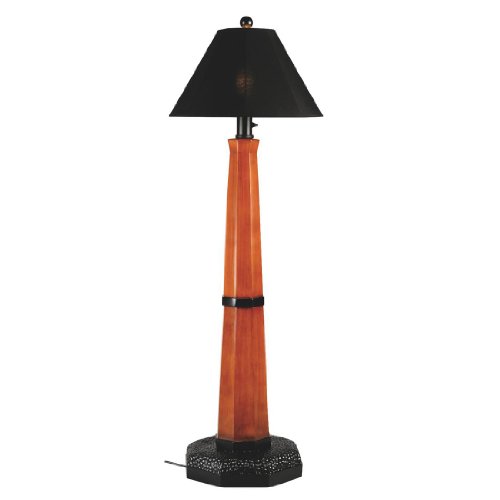 #Add fashionable styling and light to your outdoor living area with Manhattan all resin outdoor lamps. Warm cherry wood grain finish contrast the charcoal base and trim and are highlighted with a black Sunbrella shade. Two level dimming switch and weatherproof cord and plug, 12 ft. on the floor lamps, 16ft. on the table lamps. Unbreakable poly carbonate waterproof light bulb enclosure allows the use of a standard 100 watt light bulb. Floor lamps are 60" tall and table lamps are 35" tall. Floor and table lamp shades are 6.5" x 11.5" x 20".