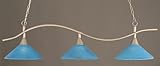 Toltec Pool Table Light Brushed Nickel Swoop Bar 16" Blue ItalianComes with 10 in. chain both sides & 11 in. of wire . Requires 3 medium base bulbs (not included) . Maximum bulb wattage: 150W . 61 in. L x 16 in. W x 14 in. H
